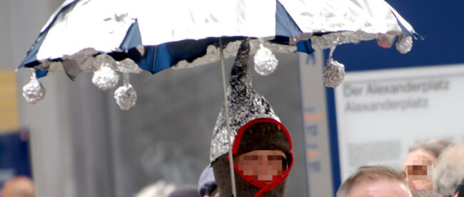 Die Idee einer Kopfbedeckung aus Alufolie ist nicht neu. Ursprünglich wohl als Schutz vor Telepathie und Strahlung gedacht, haben die Hüte heute aber eher eine metaphorische Bedeutung. Verschwörungstheoretiker werden häufig als Aluhutträger beschimpft. Allerdings tragen die wenigsten tatsächlich einen solchen Aluhut.